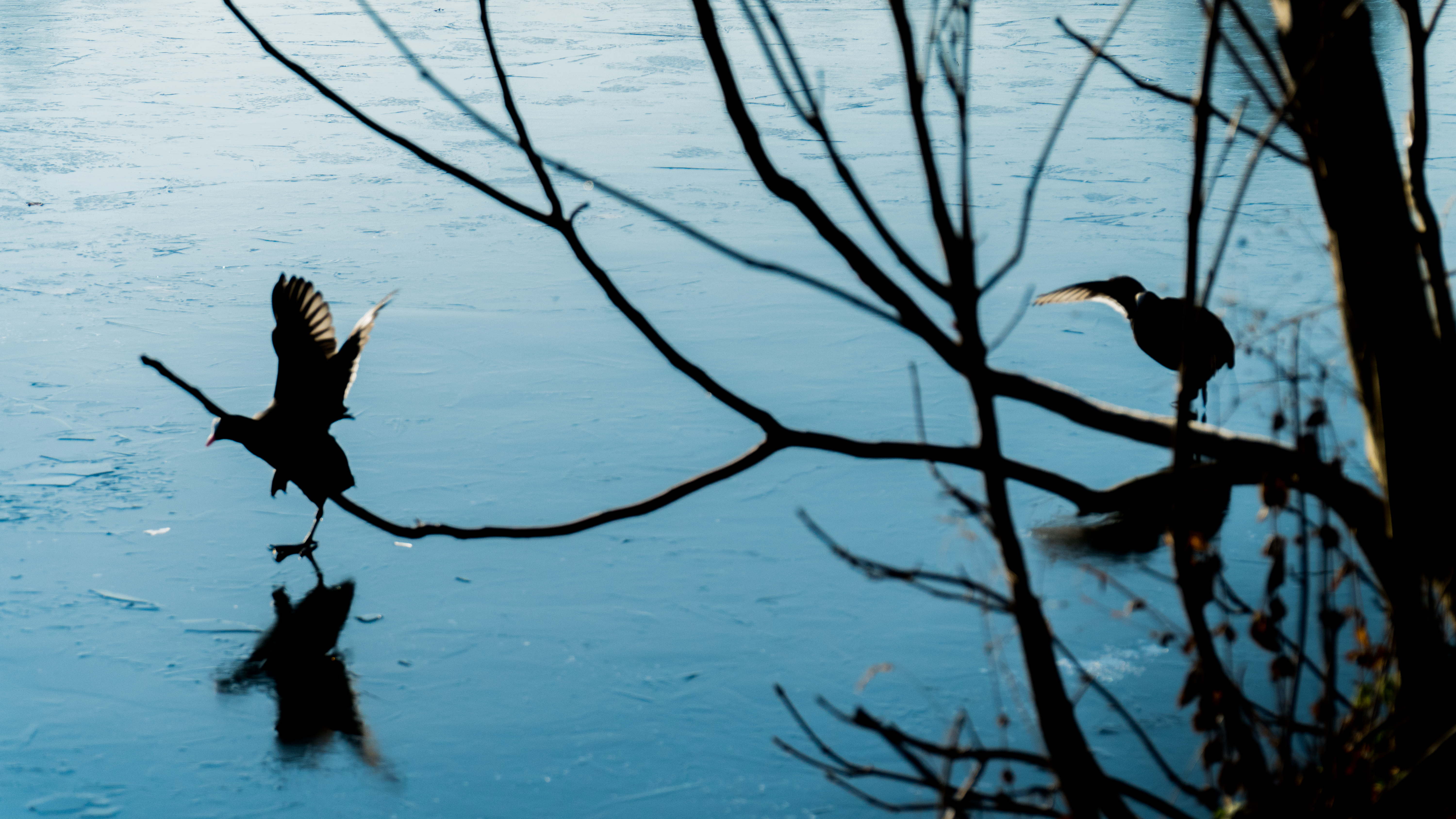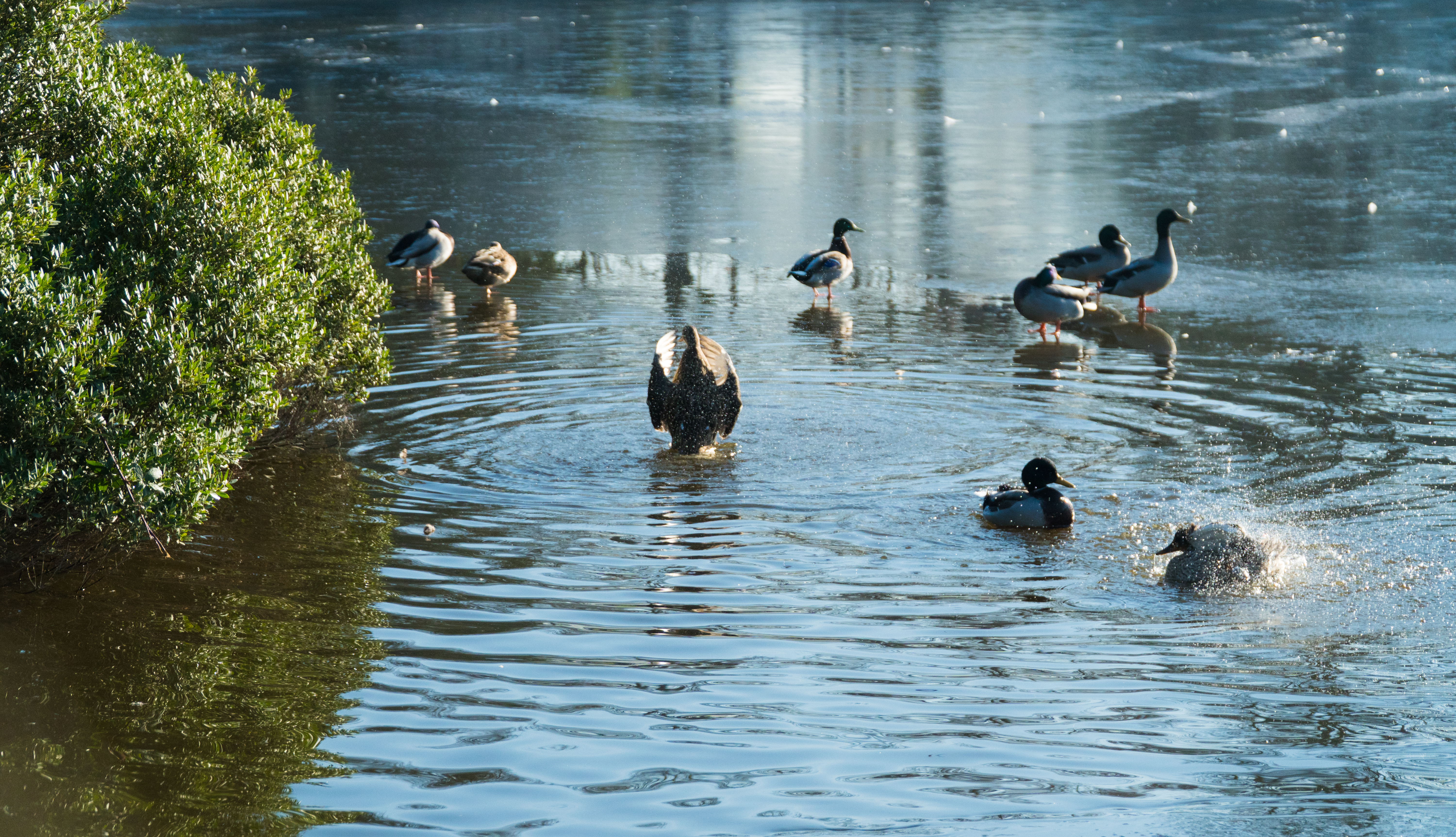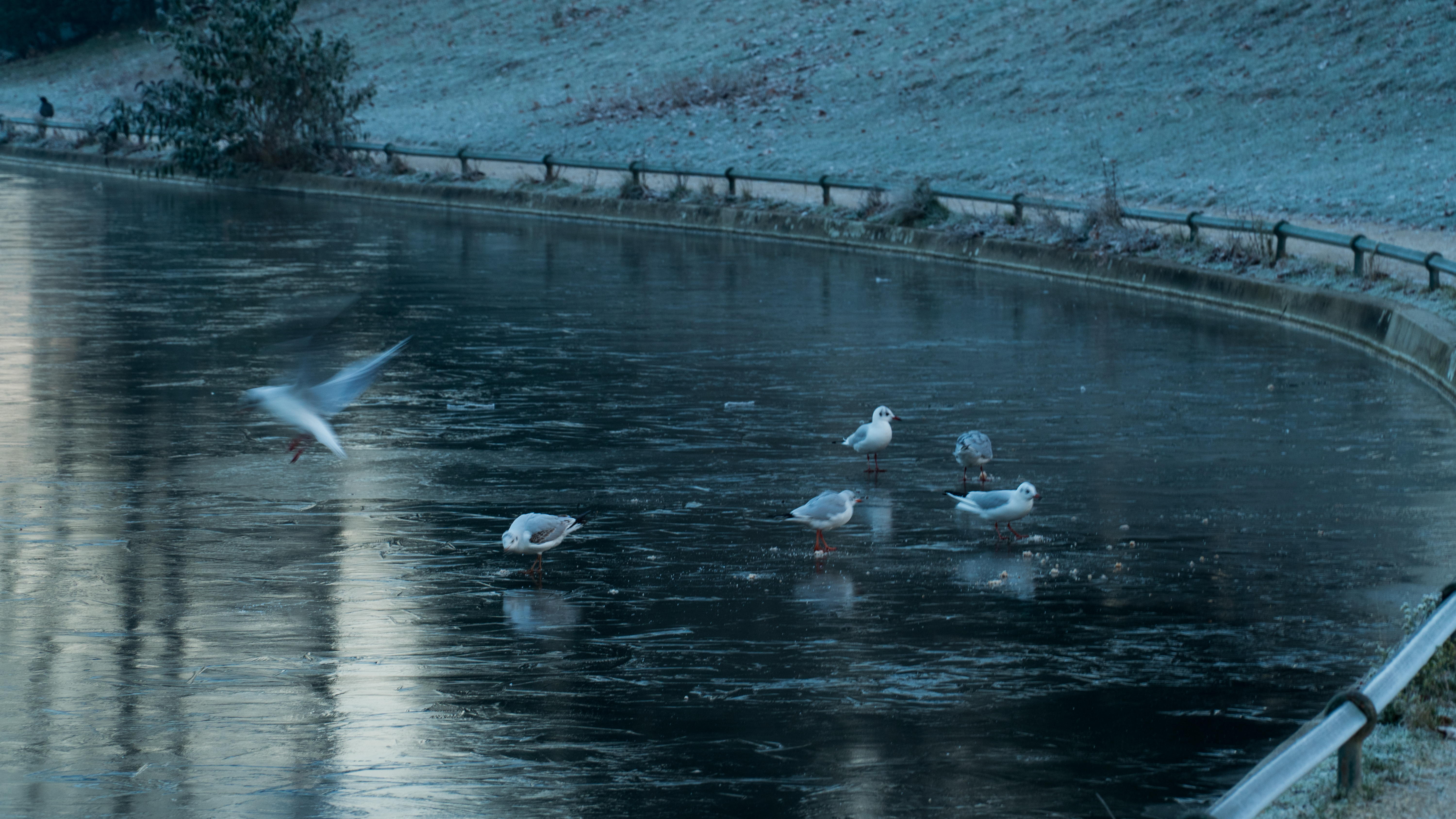 La nature se réveille tout doucement en ce premier jour de décembre, c’est le début de l’hivers, un hiver gelé ou les seuls êtres vivants qui osent se balader sur la glace sont les animaux… Ils se baladent sur le lac, à l’abri des chiens et des voitures. Des doux rayons de soleil viennent réveiller et réchauffer leurs becs engourdis par le froid.